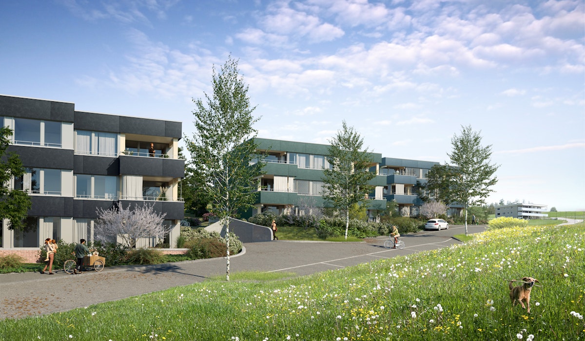 Weite Felder, eine grüne Umgebung und eine leicht erhöhte Lage: Panorama eröffnet Ihnen neue Ausblicke. Darum hat jede Wohnung auch einen grosszügigen Balkon oder eine weitläufige Terrasse – für besinnliche Stunden im Freien und das Zusammensein an der frischen Luft.